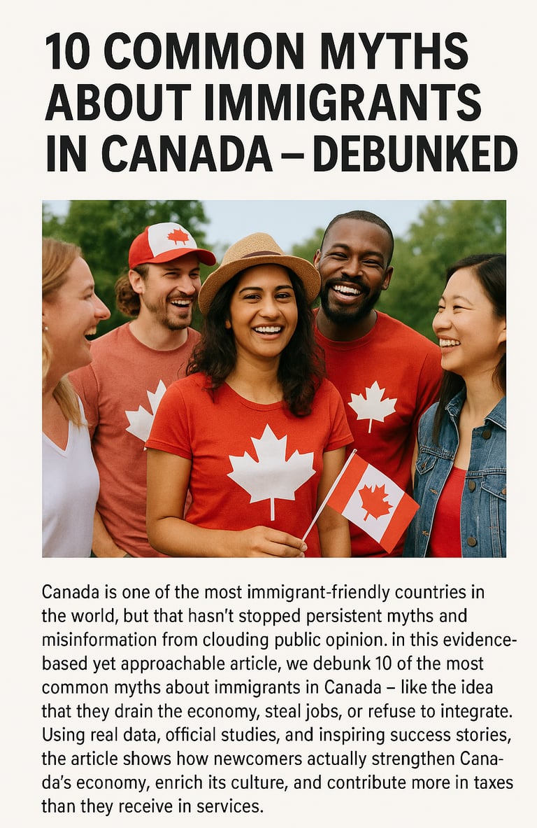Canada is one of the most immigrant-friendly countries in the world, but that hasn’t stopped persistent myths and misinformation from clouding public opinion. In this evidence-based yet approachable article, we debunk 10 of the most common myths about immigrants in Canada—like the idea that they drain the economy, steal jobs, or refuse to integrate. Using real 2025 data, official studies, and inspiring success stories, the article shows how newcomers actually strengthen Canada’s economy, enrich its culture, and contribute more in taxes than they receive in services. Whether you’re a newcomer yourself, a curious Canadian, or someone navigating today’s debates on immigration, this guide offers clarity, nuance, and facts that challenge stereotypes and reveal the real story behind Canada’s immigrant population.