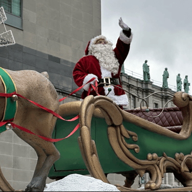 East End (Place des Arts / Saint-Urbain Street): The parade’s terminus near Saint-Urbain is by the Place des Arts and the edge of Chinatown. Typically, organizers often have Santa pause here for a grand finale moment, since it’s at the “Place des Festivals” area of downtown. In some past years, Santa has mounted a special platform or stage at the end to address the crowd briefly – like leading a countdown to turning on holiday lights, or simply a final “Merry Christmas, Montréal!” with confetti bursting. (Keep an ear out for announcements; even if nothing formal is planned, the end often has a celebratory feel.) The crowd here is quite large, including many families who come from the eastern neighborhoods. A benefit of the end point: you see the entire parade go by, and there’s often a sense of communal celebration when it’s over – people sometimes stick around, milling about the Place des Arts plaza which is often decorated with giant Christmas baubles and lights. This zone is also closest to Complexe Desjardins, a shopping mall that usually has its own indoor holiday displays – some families make a combo outing of watching the parade then stepping into Complexe Desjardins’ atrium where there might be animatronic winter scenes or even a mini carousel (they’ve had that in certain years). The Chinatown gate on Saint-Laurent is also a block away, so the cultural backdrop is interesting. One challenge in the east end: by the time floats reach here, it’s around 12:30 p.m., so if the weather is cold you’ve been outside a while. But the excitement builds as Santa nears – you’ll hear the cheering ripple down the route as he approaches. This area is great if you want to possibly catch any final performances or speeches, and if you have older kids/teens who might enjoy the post-parade downtown bustle (maybe grab lunch in Chinatown or at a food hall nearby afterwards). Just be ready for the crowd crush when dispersing – thousands of people will leave at once, so expect slow-moving masses headed toward the metro or parking.